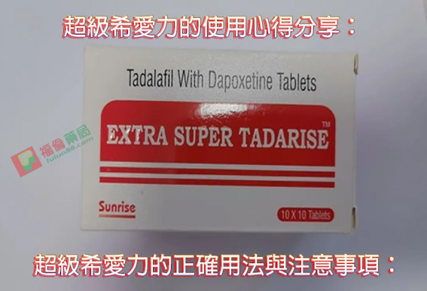 超級希愛力:將他達拉非 + 達泊西汀結合,能同時解決勃起與早洩問題。