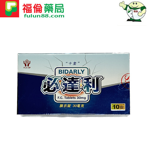 品牌名稱:十全必達利膜衣錠 30mg